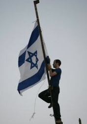 メディア・アーティストの友人は、あからさまな制作動機とあからさまな表現、単純といっていいわかりやすさ故に、この「作品」を面白がっています。ヨルダン川西岸地区のイスラエル人入植者たちは、パレスチナ人の農地をアウトポスト、イスラエルの法規によってさえ違法な入植地前哨とするため住宅を建てては、あるいはエルサレムやヘブロンでのようにパレスチナ人家屋を奪っては、あるいはパレスチナ人農地を略奪するために、ダヴィデの星(イスラエル旗)を掲げます。その写真をいくつか見てみましょう。